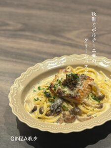 秋鮭とポルチーニ茸のクリームパスタ