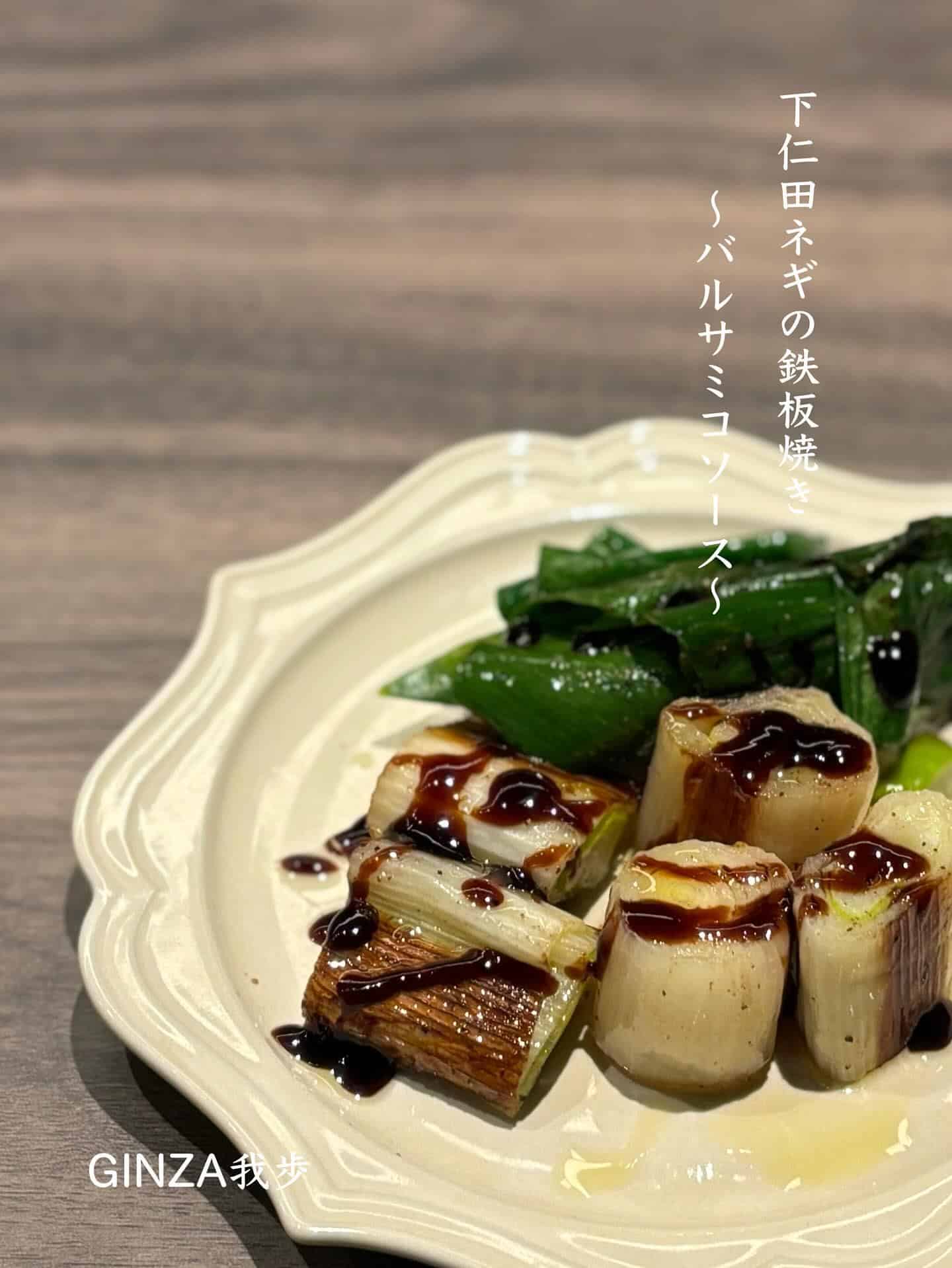 旬を迎えた下仁田ネギはじっくりと鉄板で焼き上げて、バルサミコソースで。