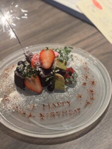 お店ではお祝いのデザートプレートもお承りしておりますので、お誕生日や送別会など様々なシーンでご利用くださいね。