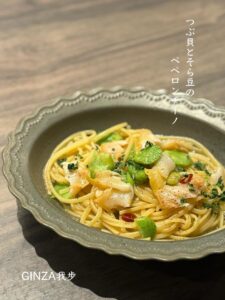 イチオシのつぶ貝とそら豆のペペロンチーノ